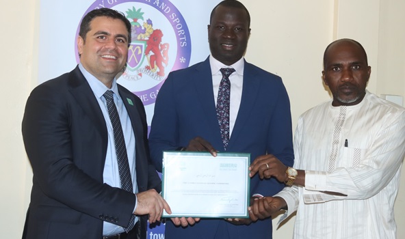 The Secretary General of the Islamic Solidarity Sports Association (ISSA), Nasser Ayman Majali, paid a courtesy visit on the Minister of Youth and Sports, Hon. Bakary Y. Badjie , as part of his official visit to The Gambia. The visit aimed to strengthen collaboration between ISSA and the Gambia National Olympic Committee (GNOC) while promoting sports as a unifying force within the Islamic community.