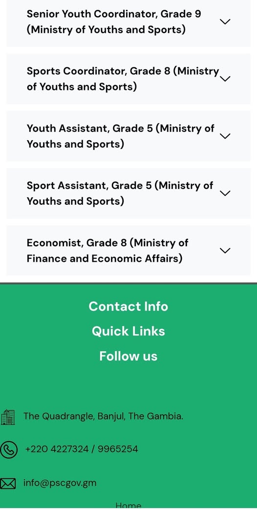 Public Service Commission of The Gambia invites applications for the following positions under the Department of Youths and Sports: